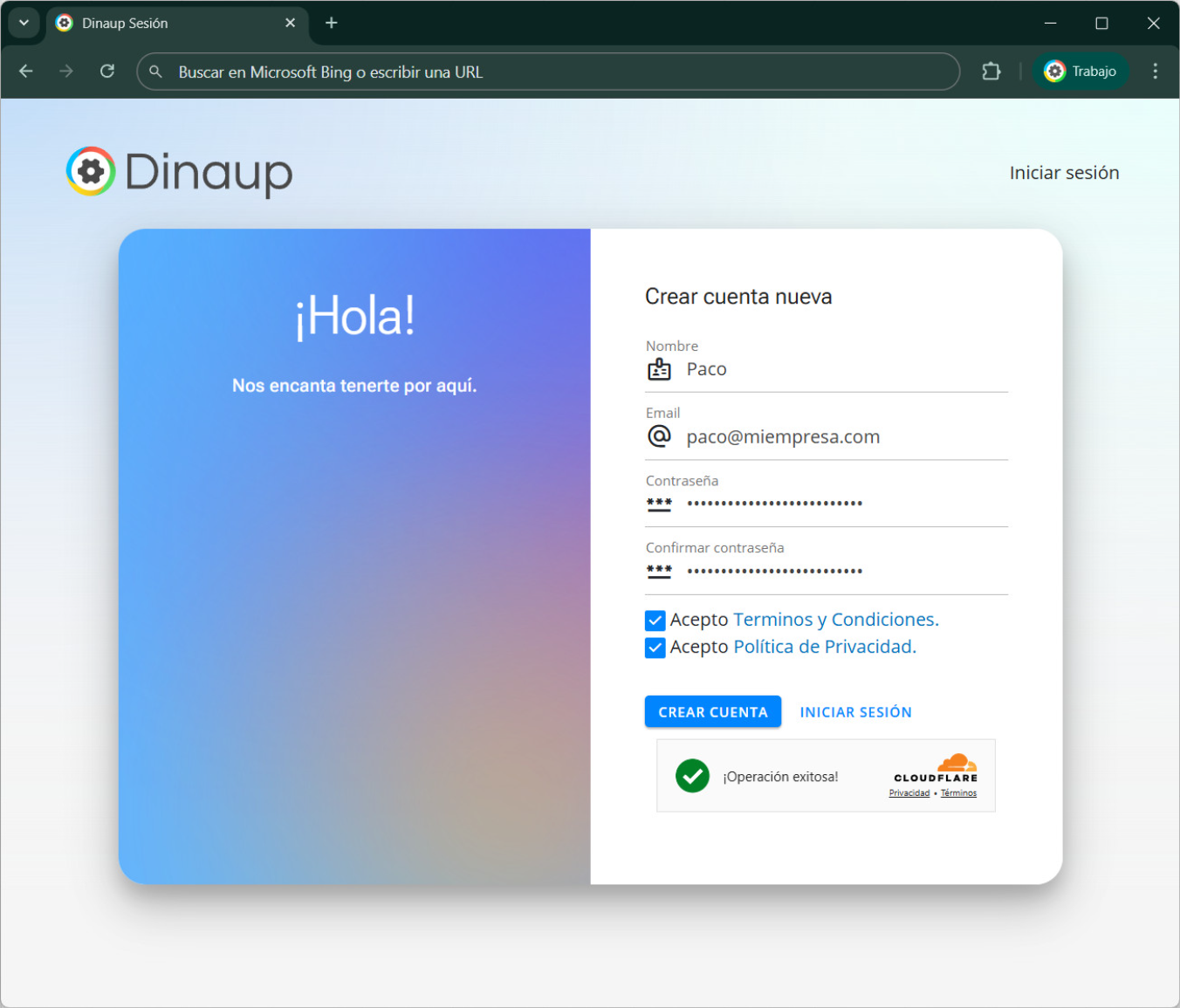Vuelve a [dinaup.com](https://dinaup.com), pulsa en **Iniciar sesión** e introduce tu correo y contraseña.
